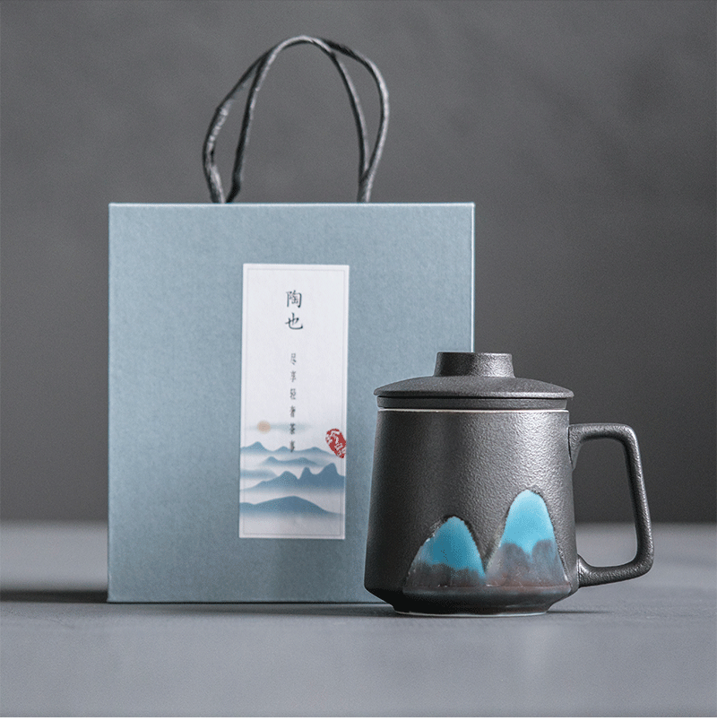 商品名称:简约手绘青山陶瓷滤茶杯 粗陶磨砂质感 商务小礼品有哪些