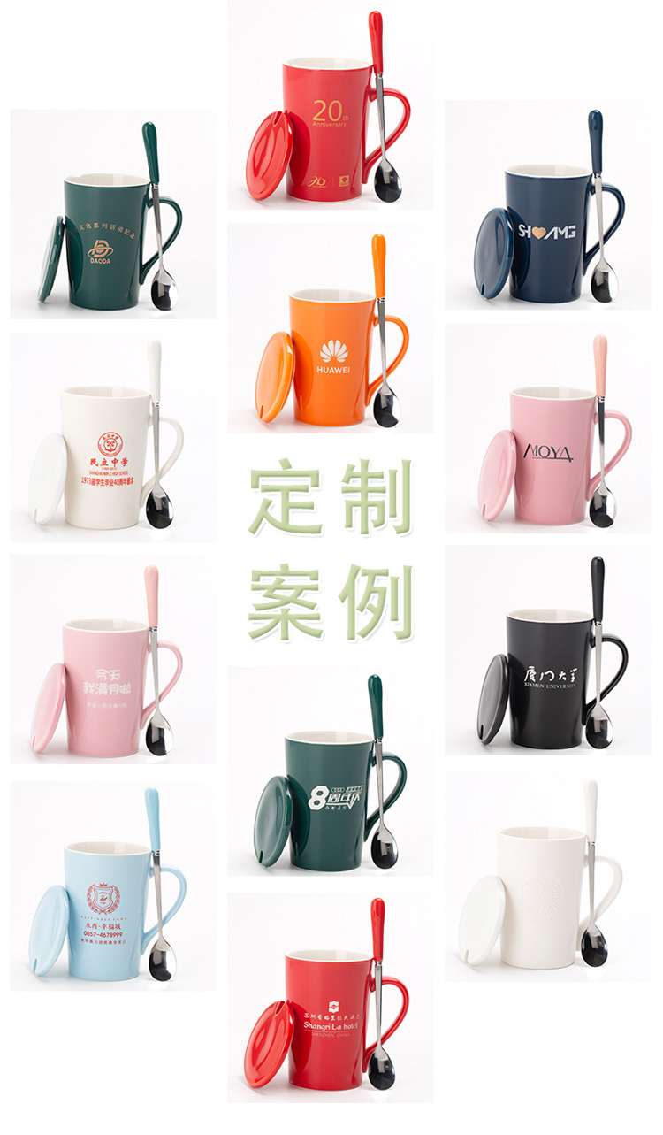 商品名称:陶瓷杯 咖啡杯 广告杯子水杯带盖勺子礼盒装 送客户小礼品