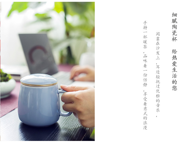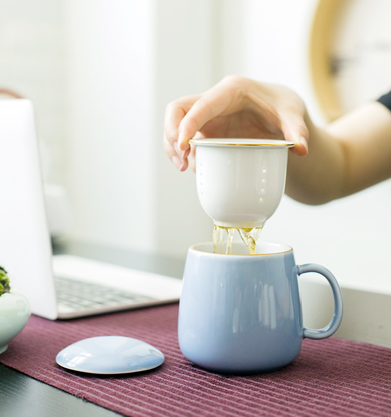 商品名称:简约清新马克杯茶杯带盖过滤办公室泡茶杯水分离陶瓷杯 公司小礼品