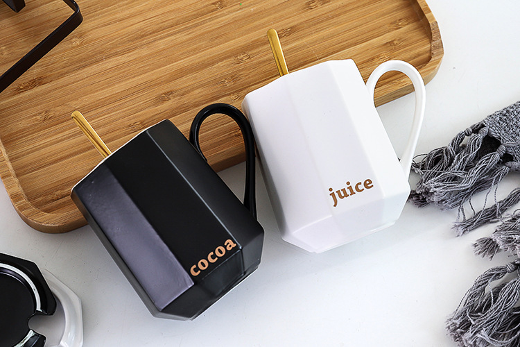 北欧陶瓷马克杯子创意咖啡杯带盖勺 商务礼品礼品