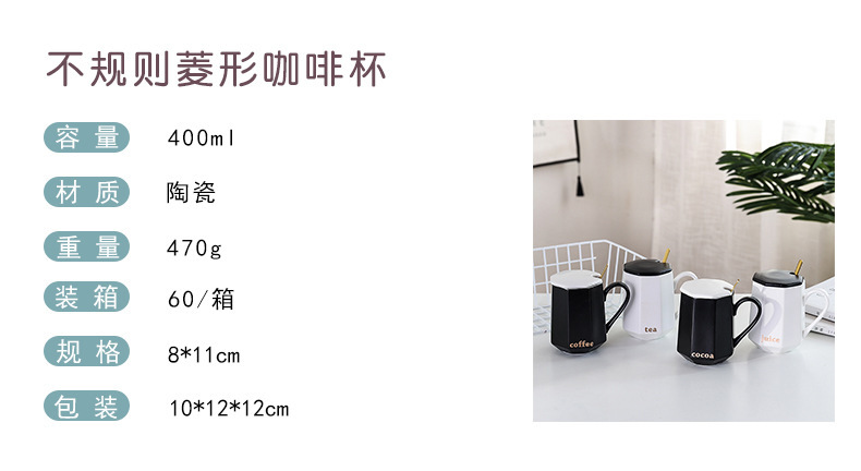 商品名称:北欧陶瓷马克杯子创意咖啡杯带盖勺 商务礼品礼品