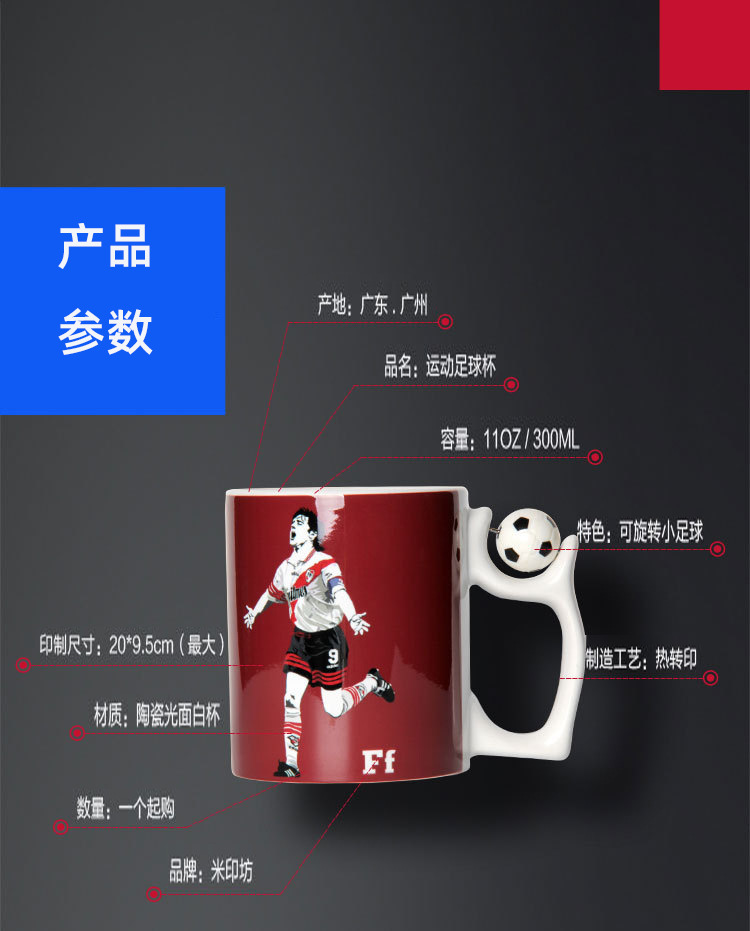 商品名称:马克陶瓷定做个性足球专业饮水杯 展会促销礼品