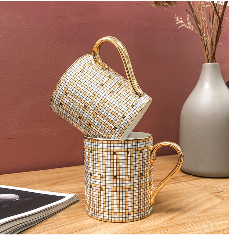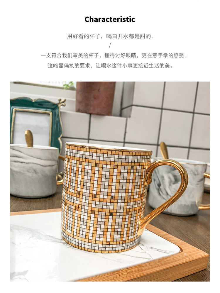 商品名称:新品马赛克描金陶瓷性水杯早餐牛奶咖啡杯 送个员工小礼品