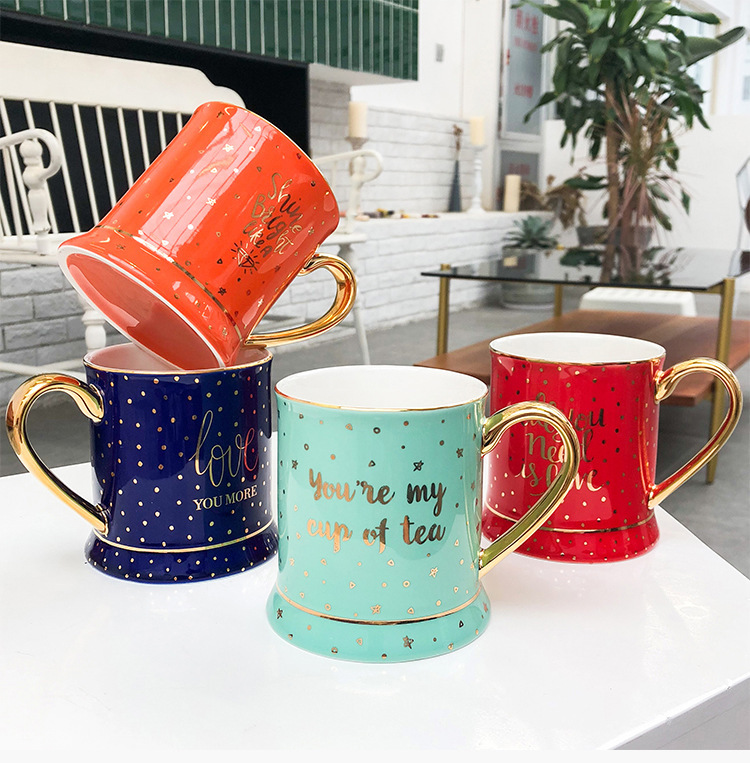 创意波点描金把手金边简约北欧风陶瓷杯 实用礼品