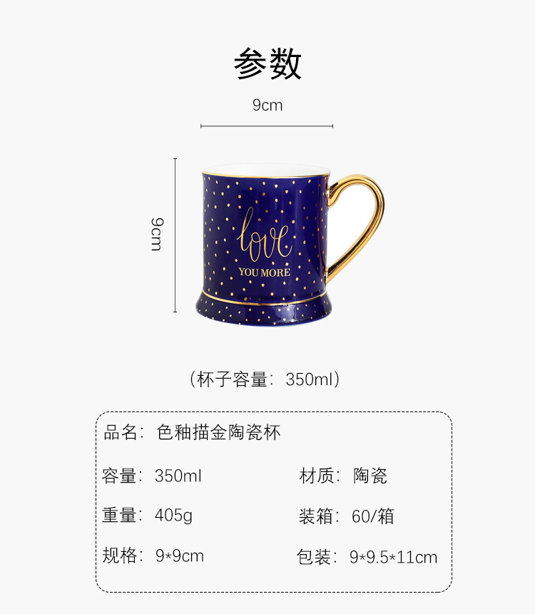 商品名称:创意波点描金把手金边简约北欧风陶瓷杯 实用礼品