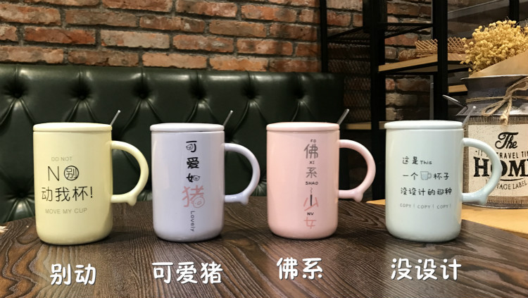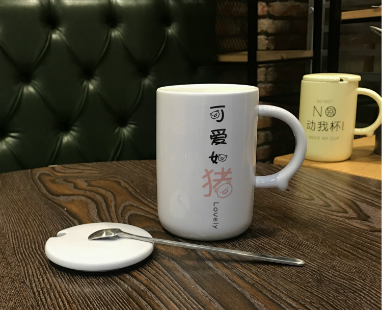 商品名称:简约带盖勺创意陶瓷杯可爱卡通水杯 赠送客户的小礼品