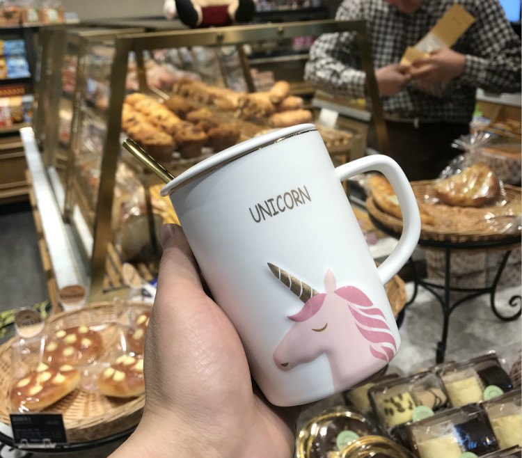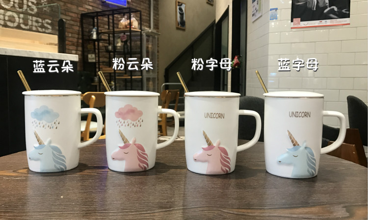 商品名称:卡通独角兽陶瓷杯带盖勺浮雕图案马克杯办公水杯 促销小赠品