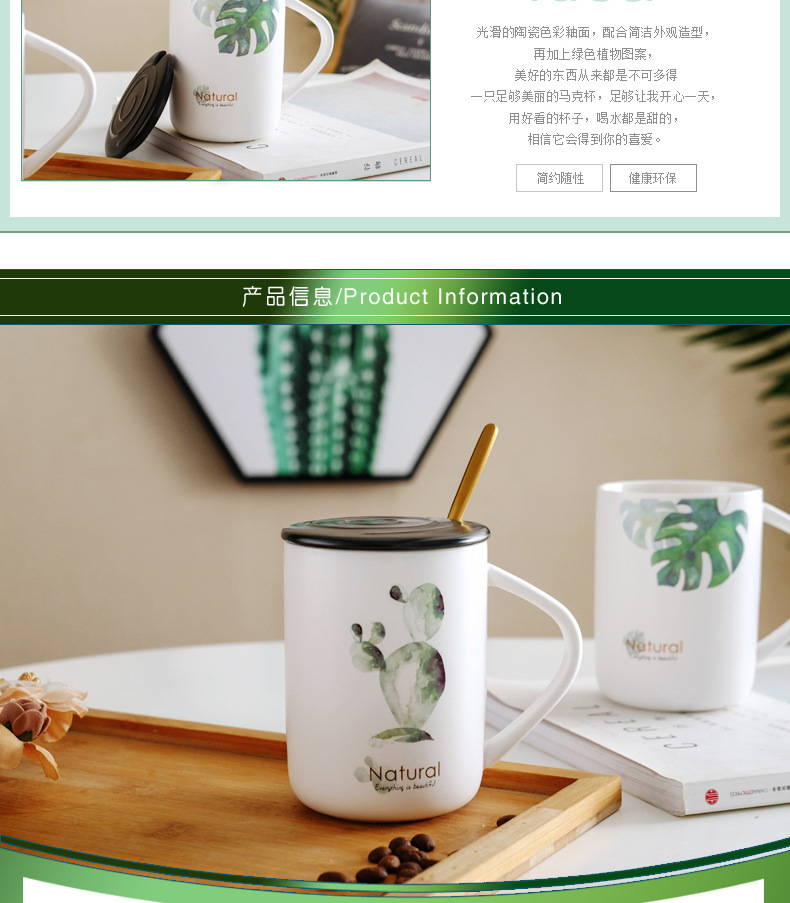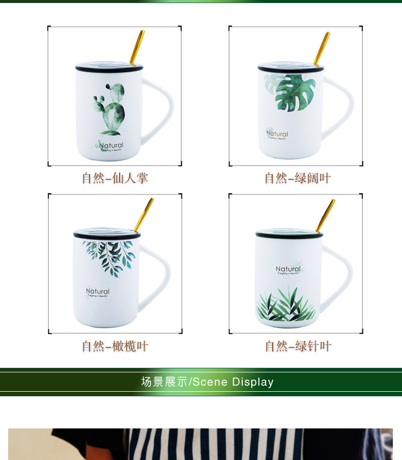商品名称:简约自然绿植树叶陶瓷杯 马克杯带盖带勺 400ml 活动创意小礼品