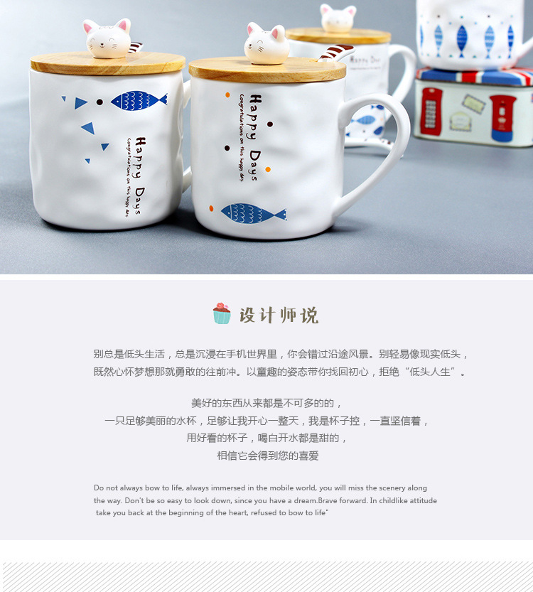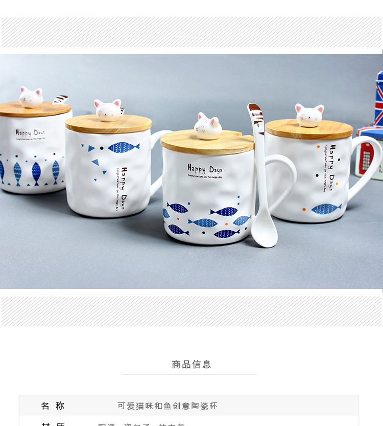商品名称:Happy Days 创意zakka 日式猫咪与鱼陶瓷杯 咖啡杯 小公司年会礼品推荐