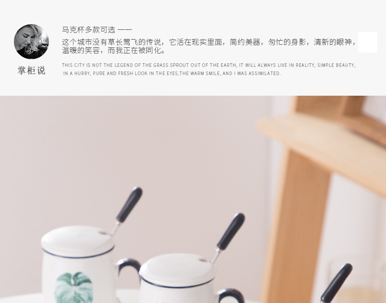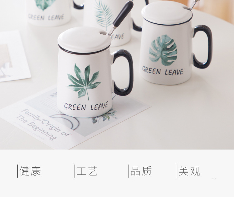 商品名称:简约造型北欧风树叶图案马克杯 带盖陶瓷杯360ML 有哪些精美的小礼品