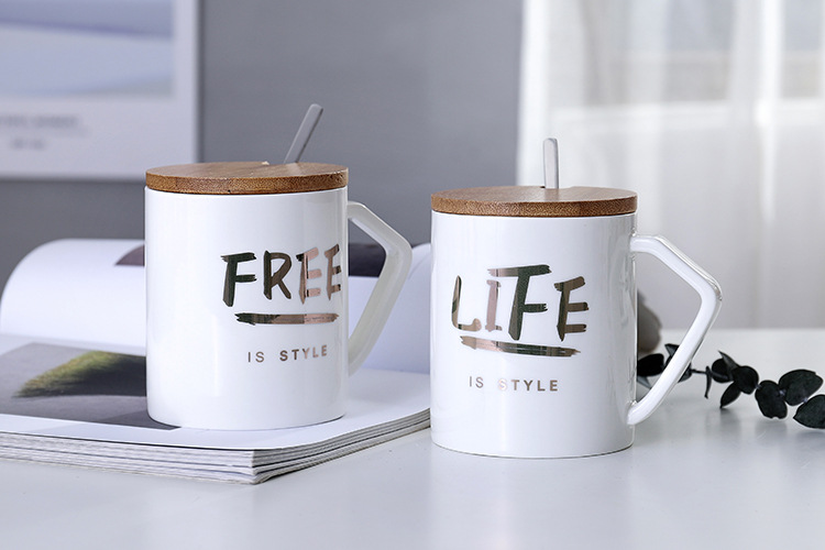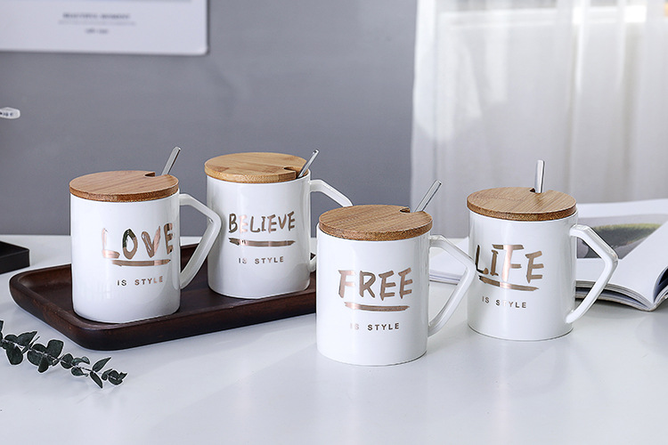商品名称:ENJOY THE MOMENT 带盖带勺商务陶瓷马克杯 办公水杯 房地产活动礼品