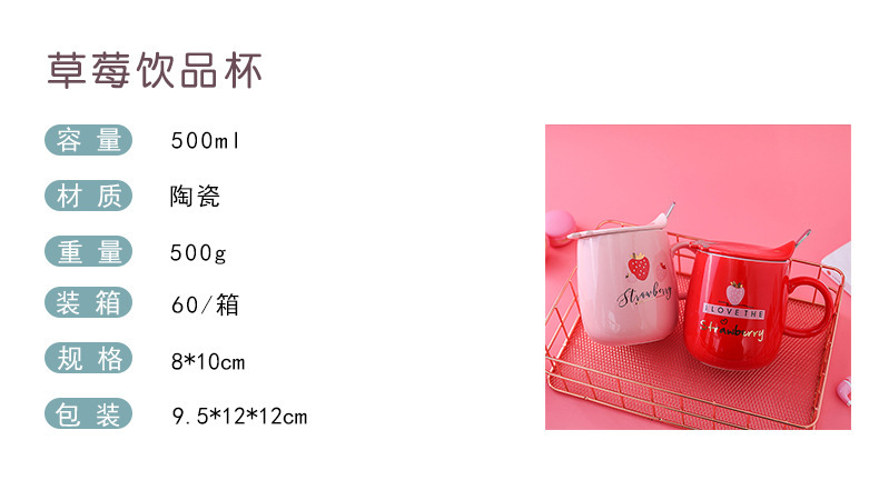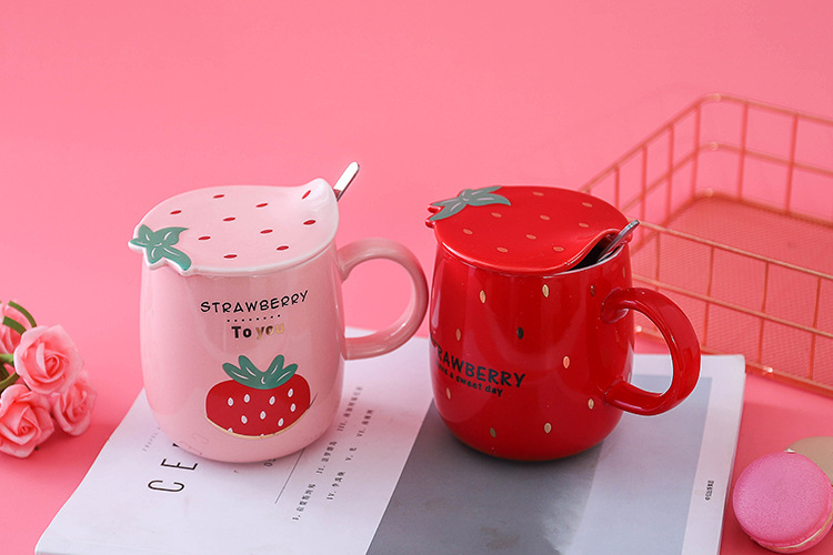 商品名称:韩式粉色系草莓卡通可爱带盖带勺创意咖啡水杯 送职员的礼品,什么比较合适