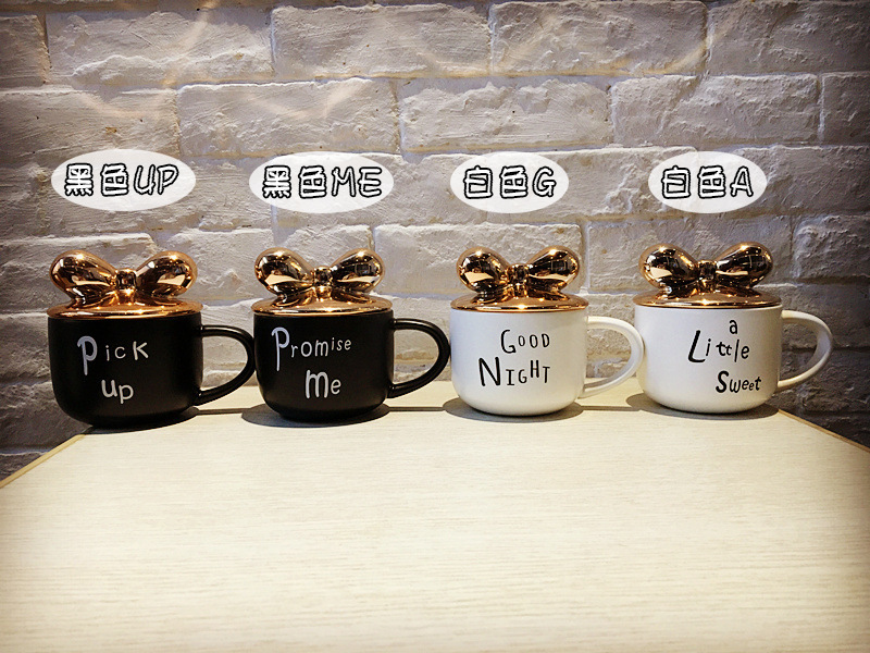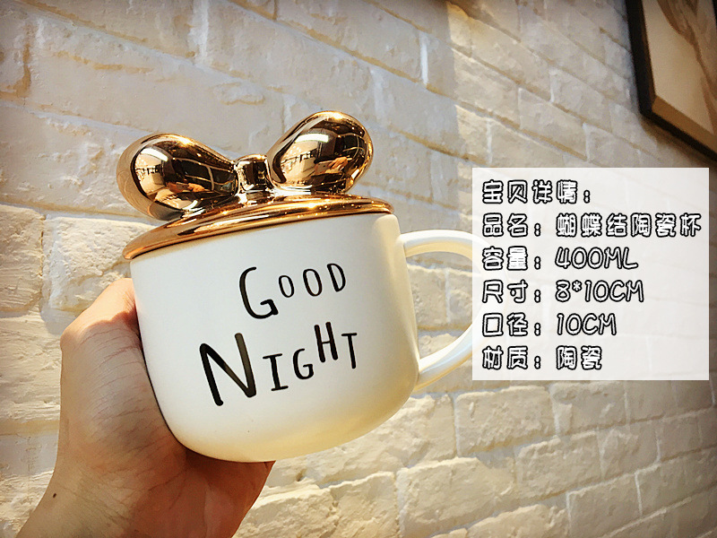 商品名称:创意蝴蝶结描金咖啡杯 马克杯定制 团队活动发什么奖品好