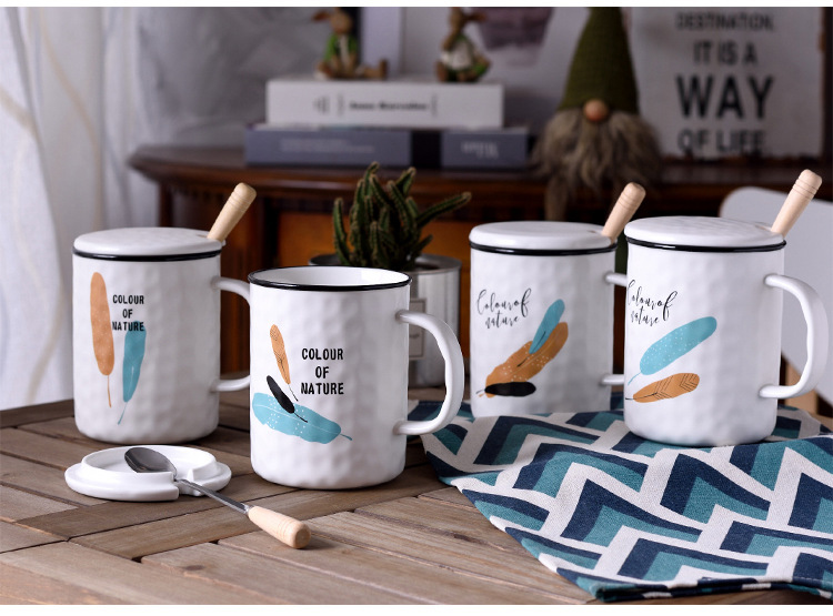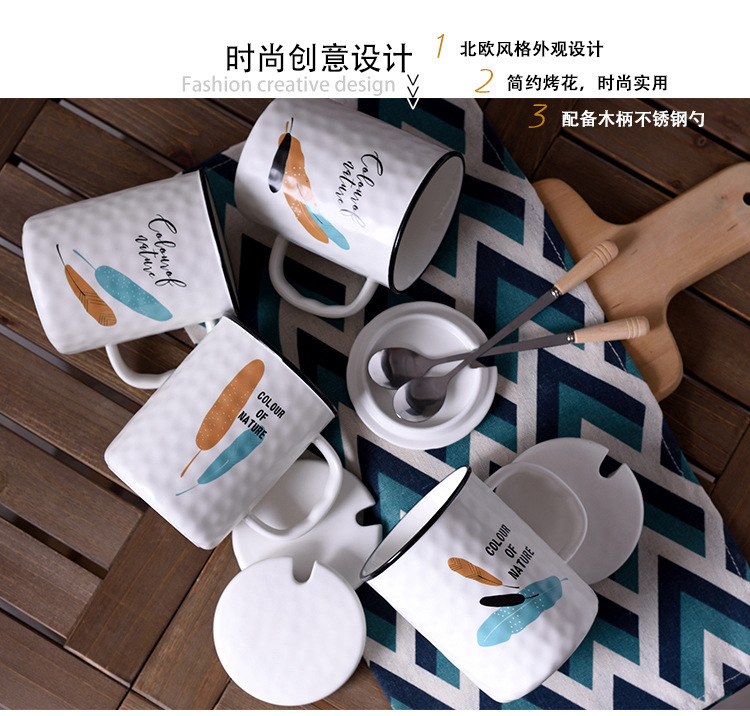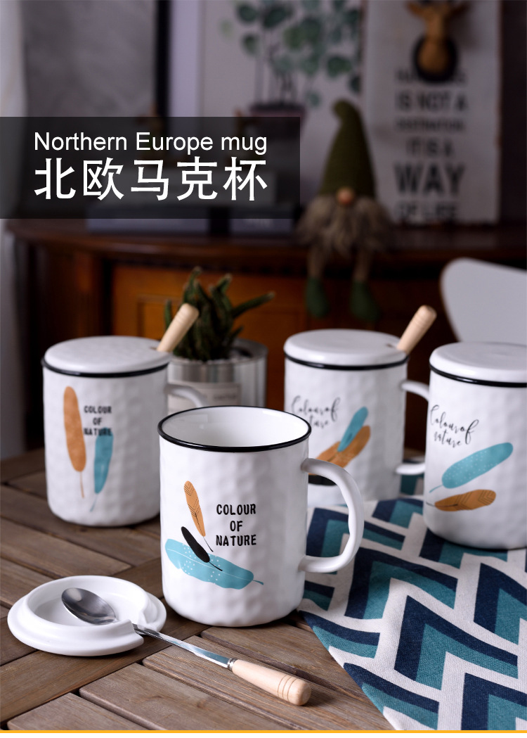 Color of nature北欧ins风带盖带勺子陶瓷杯 创意礼品杯定制 素质拓展小礼品