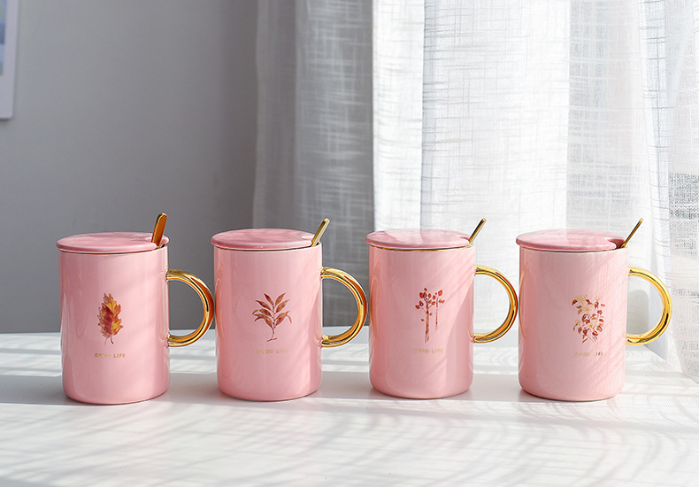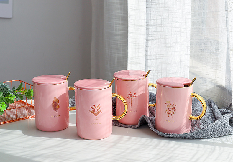 商品名称:Good Life 粉色系描金带盖带勺商务马克杯 咖啡牛奶杯 适合销售人员的礼品