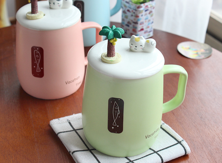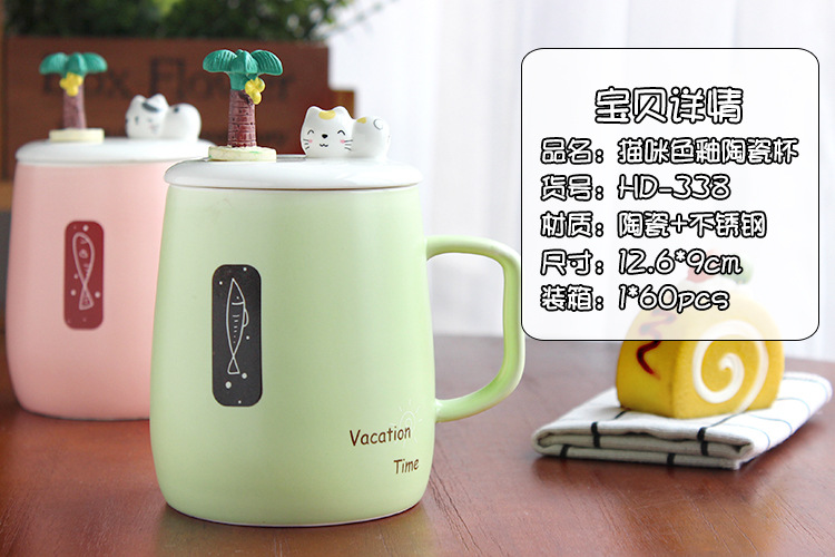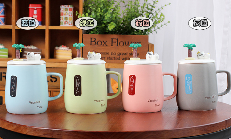 商品名称:vacation time 创意浮雕带盖带勺陶瓷马克杯 办公咖啡杯定制 创意伴手礼小礼品