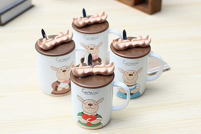 商品名称:创意鹿角手机支架杯子带盖带勺 个性礼品