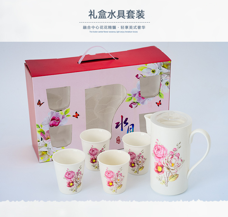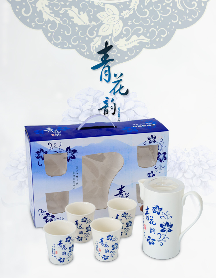 青花瓷水具套装 一壶四杯陶瓷茶具五件套 定制礼品 创意