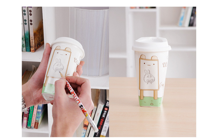 商品名称:手写留言杯 个性卡通马克杯带盖 留言板DIY写字杯 创意双层陶瓷杯