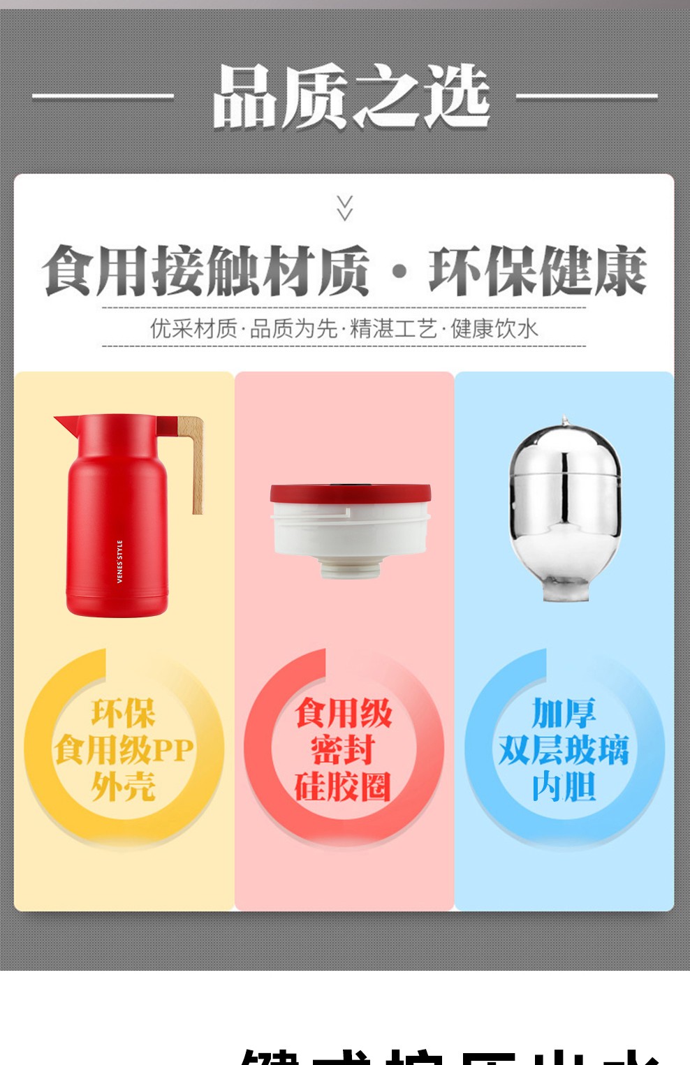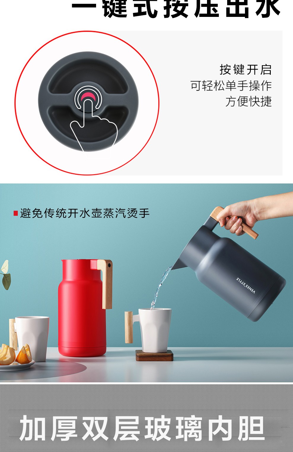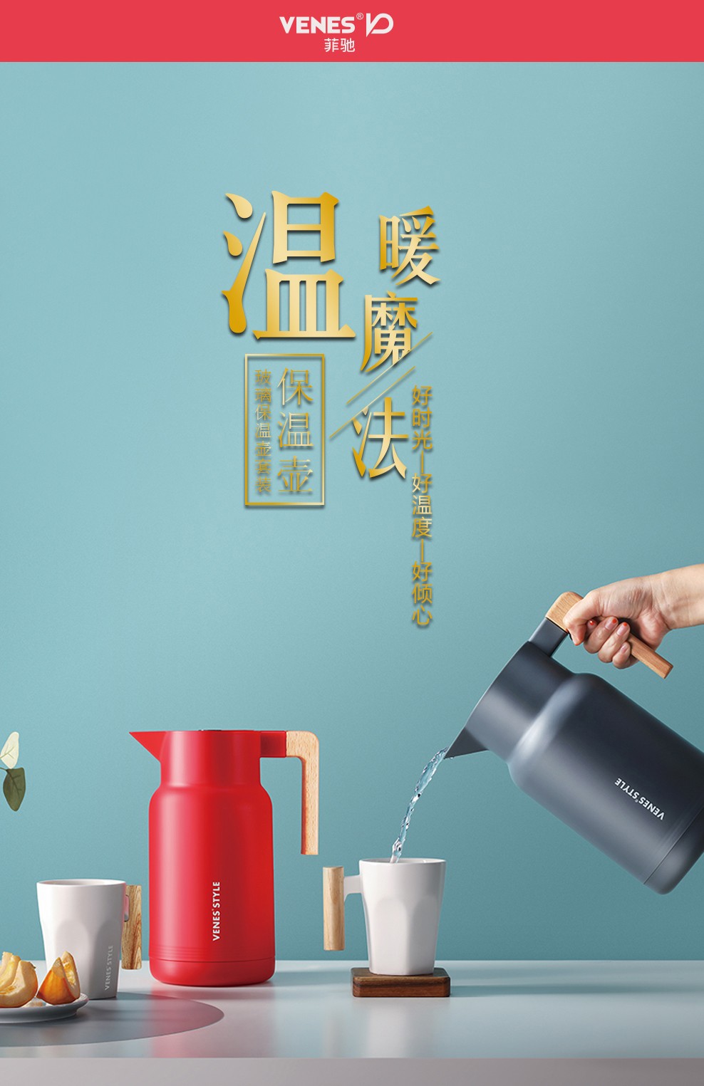 商品名称:菲驰(VENES)家用玻璃保温壶陶瓷杯套装三件套 房地产交房礼品