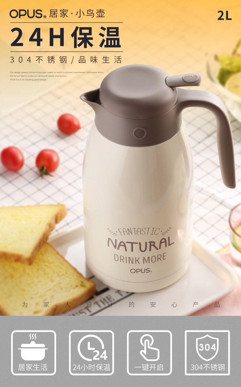 OPUS 家用保温壶长效保温2L大容量不锈钢保温瓶暖壶 实用性礼品