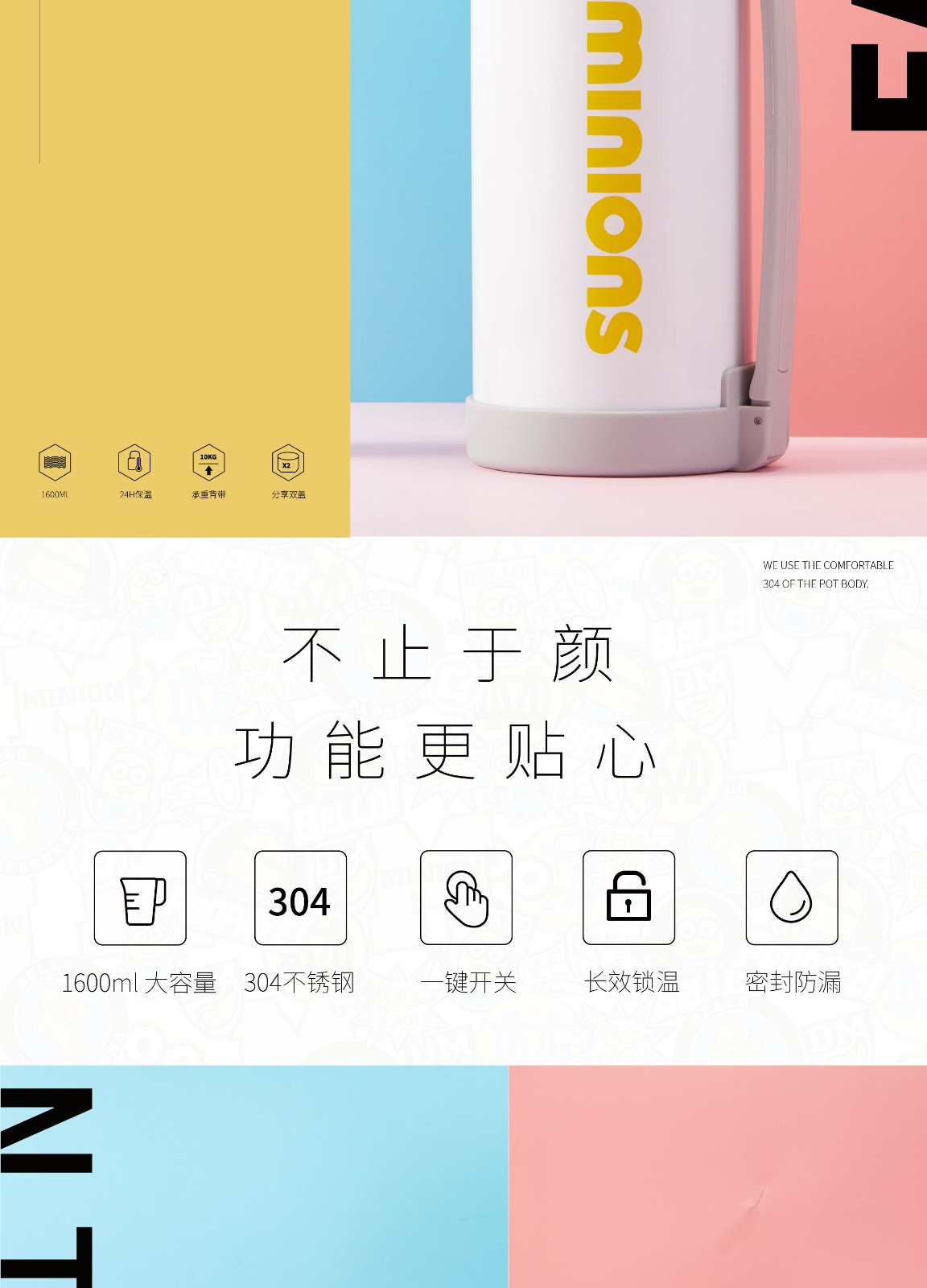 商品名称:小黄人 真空旅行壶 1600ML大容量外出保温壶 工会活动纪念品