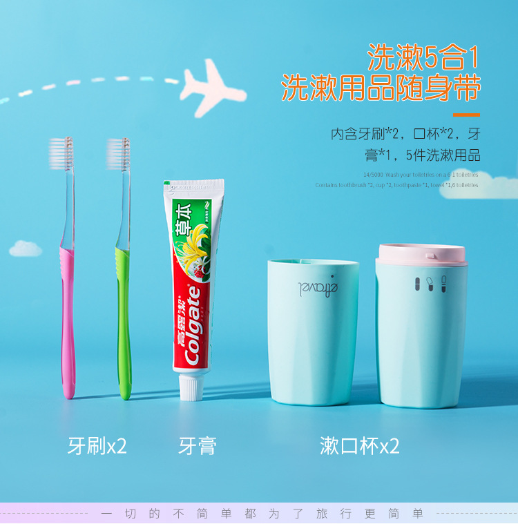 商品名称:旅行洗漱杯5合1套装 含口杯牙刷牙膏便携套装 宣传促销品