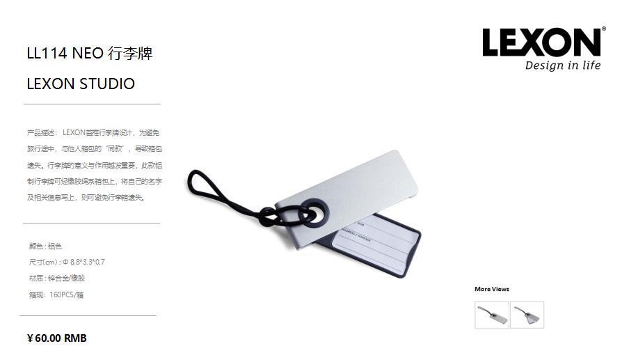 商品名称:法国乐上(LEXON)LEXON STUDIO 行李牌