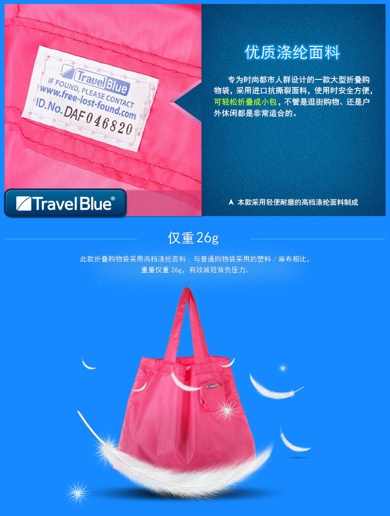 商品名称:英国蓝旅(Travel Blue)炫彩折叠购物袋 32L