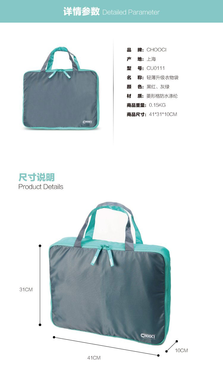 商品名称:收纳专家(CHOOCI)轻薄便携衣物袋 防水耐磨分类收纳包(CU0111)