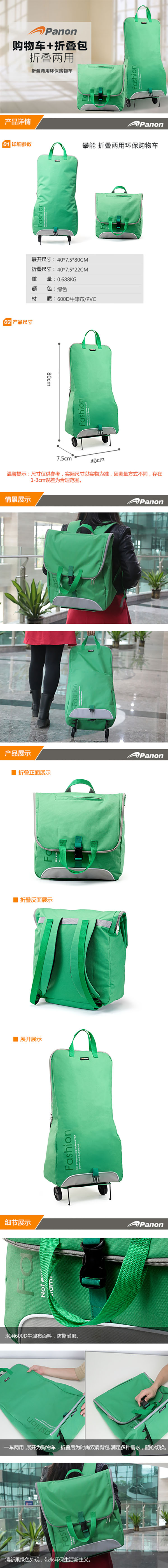 商品名称:攀能(Panon)时尚两用双肩背包购物车 专利设计折叠购物车PN-2875