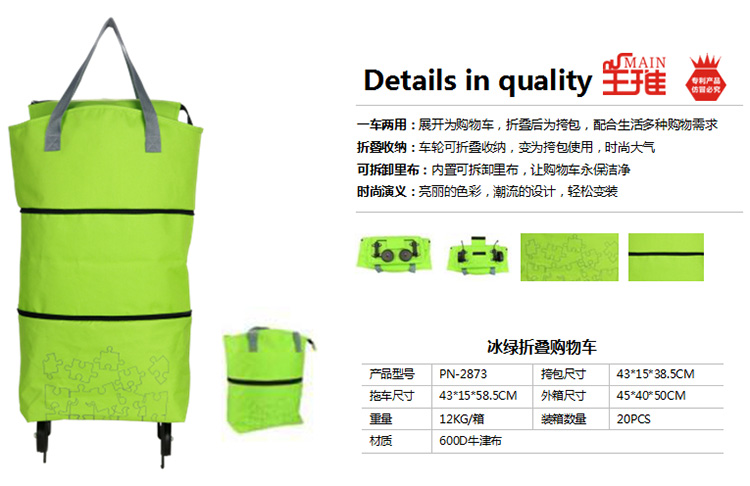 商品名称:攀能(Panon)冰绿折叠购物车PN-2873