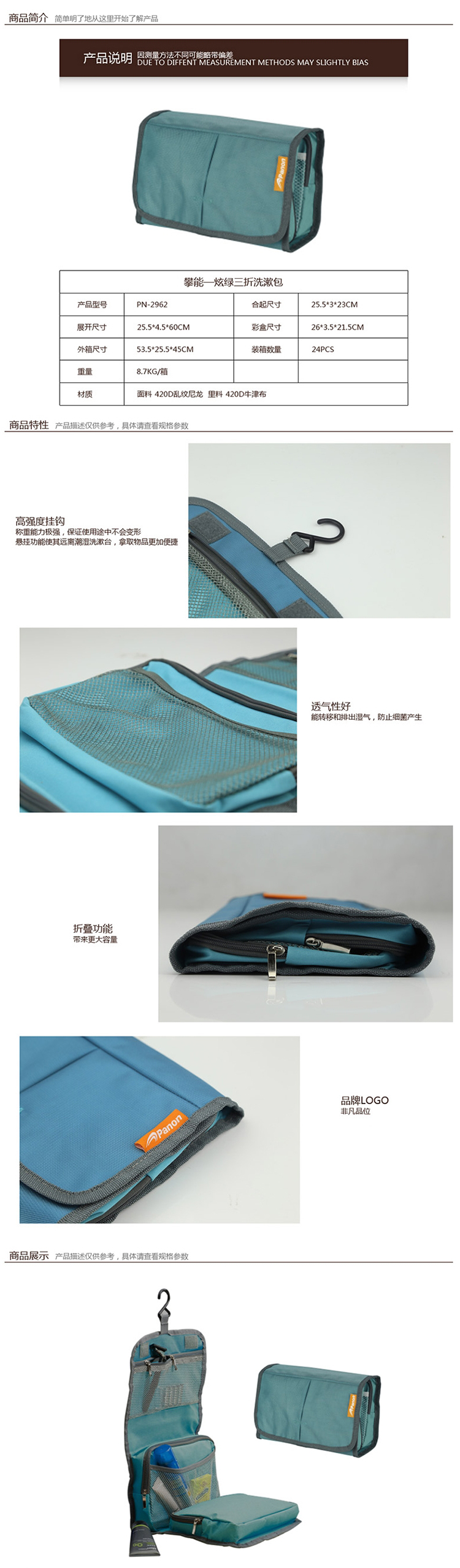 商品名称:攀能(Panon)三折洗漱包PN-2962 差旅必备