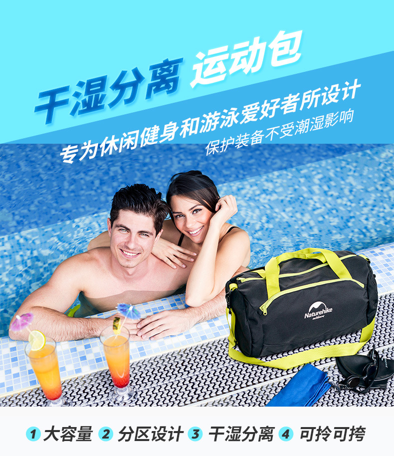 商品名称:Naturehike 干湿分离游泳包 大容量沙滩游玩收纳包 健身房运动包单肩包 夏季送赠品女士什么好