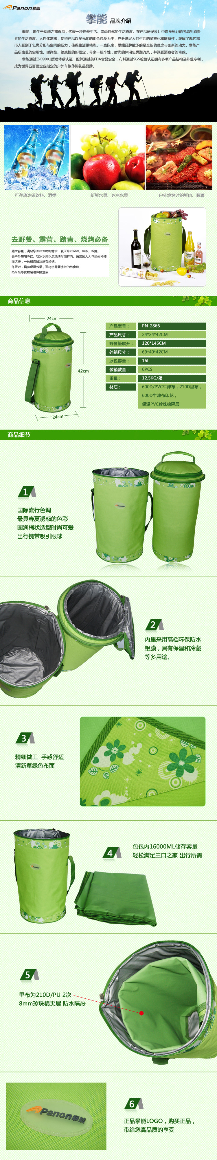 攀能(Panon)绿野仙踪野餐垫冰包 三合一多功能冰包16L PN-2866