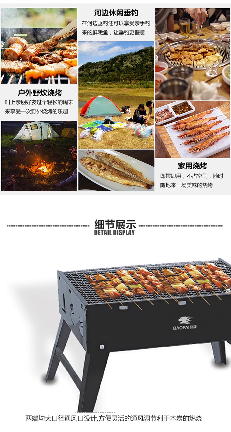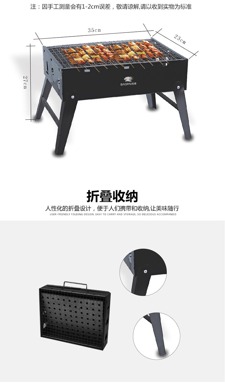 商品名称:豹牌便携式不锈钢烧烤炉 可折叠易清洗 户外野餐里礼品