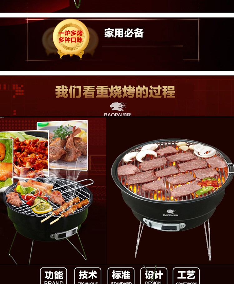 商品名称:豹牌便携式可折叠烧烤炉 野餐聚会用品