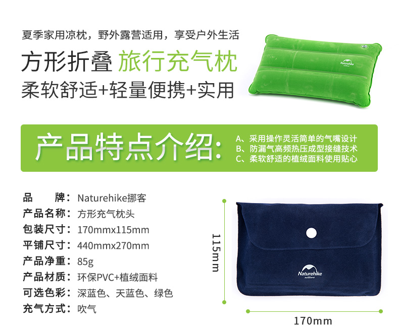商品名称:Naturehike毛绒充气枕头午睡小枕头旅行枕 促销礼品