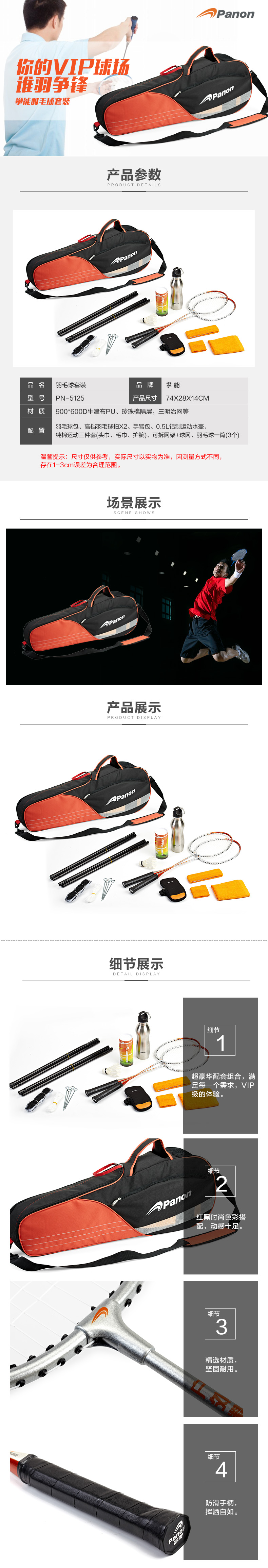 商品名称:攀能(Panon)运动健身套装 羽毛球拍包套装 PN-5125运动套装