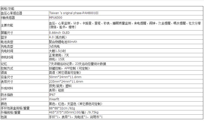 商品名称:智能手环 运动计步时尚手环礼品 深度防水血压监测手环 商务礼品