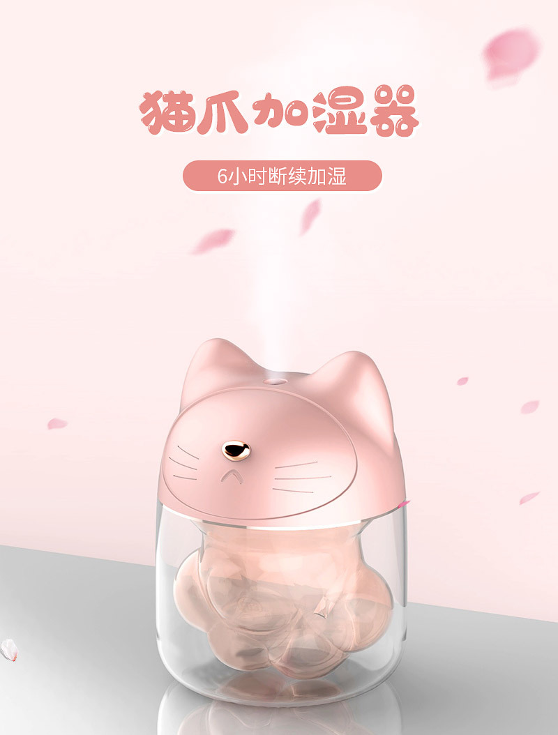 猫爪杯加湿器温馨七彩夜灯静音加湿 企业宣传礼品