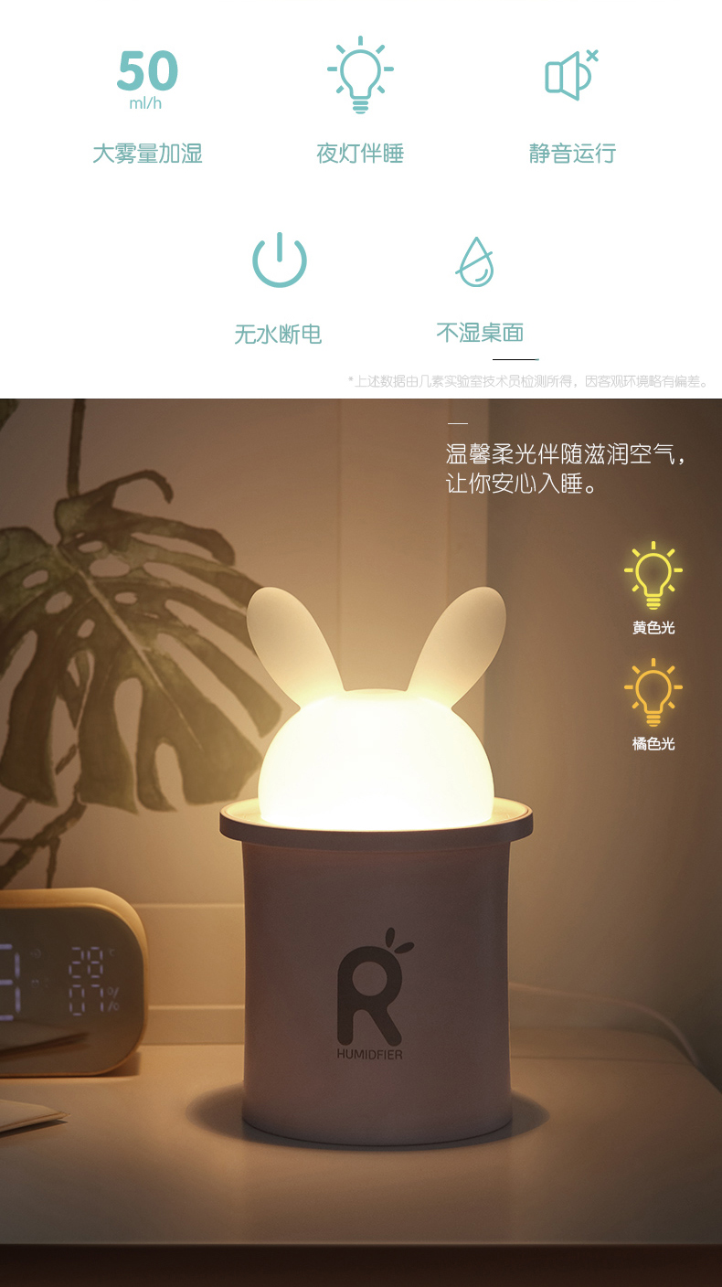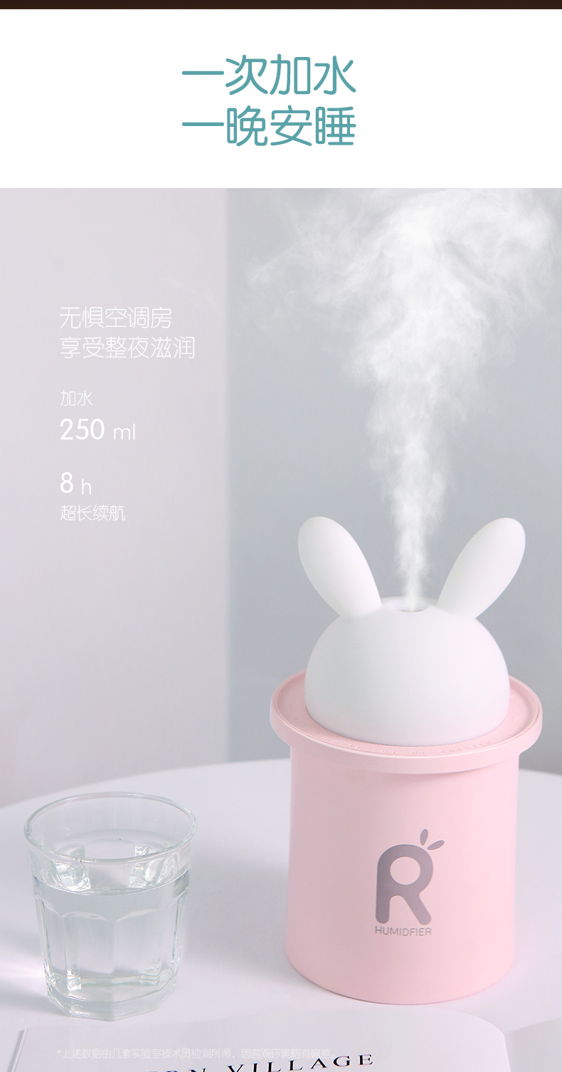 商品名称:小萌兔桌面加湿器 创意迷你负离子加湿器 USB家用车载加湿器 适合公司年会的游戏创意小礼品