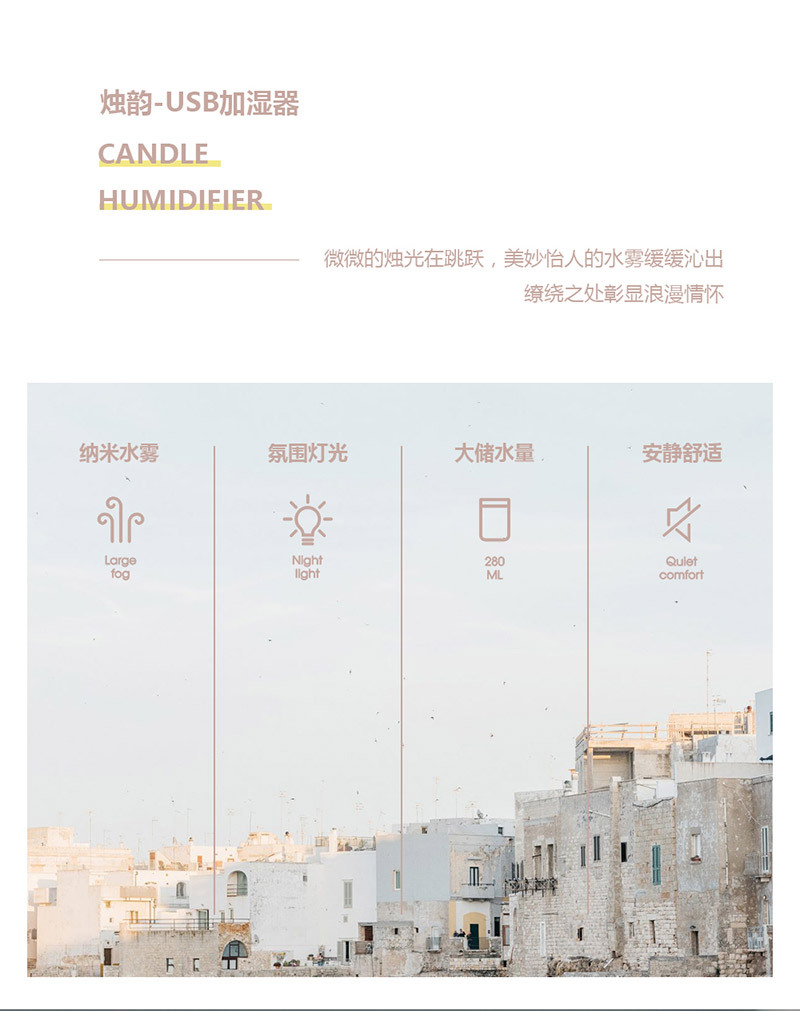 商品名称:桌面浪漫烛台发光加湿器 创意车载家用 氛围迷你夜灯净化器 活动礼品 送客户小礼品