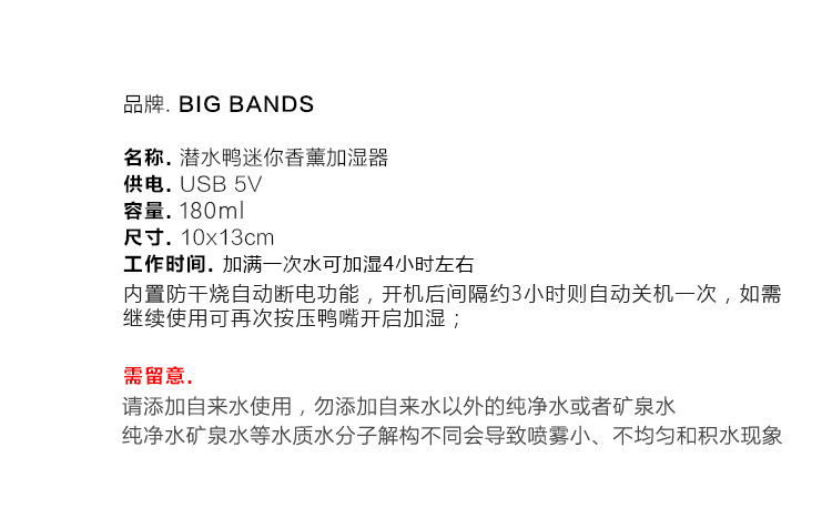 商品名称:潜水鸭迷你香薰加湿器 办公家用桌面USB静音喷雾空气加湿器 创意办公礼品