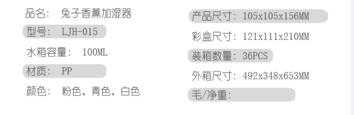商品名称:兔子香薰小夜灯加湿器 细雾型加湿器 年会礼品
