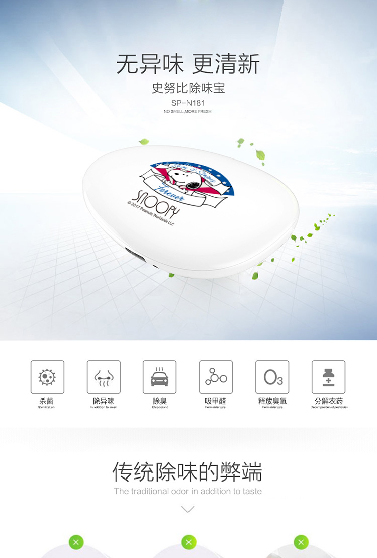 商品名称:史努比(SNOOPY) 除味宝 车载家用空气净化器除味宝汽车冰箱衣柜鞋柜过功能除异味甲醛 净化除味宝 SP-N181