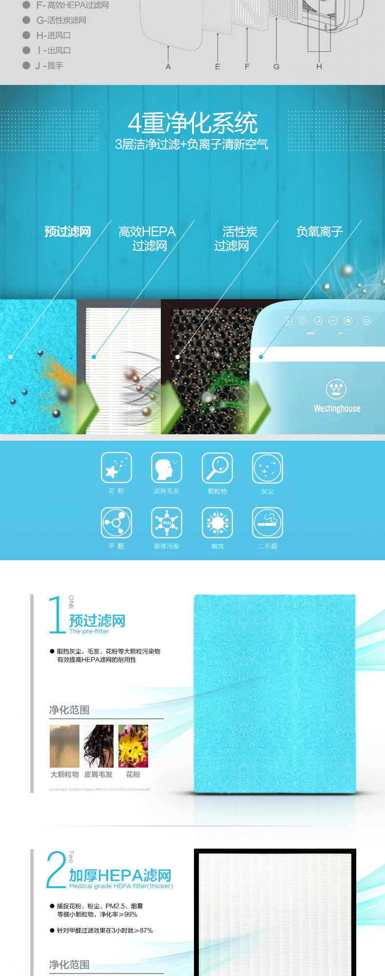 商品名称:美国西屋 空气净化器家用除甲醛烟尘PM2.5静音氧吧 家电奖品