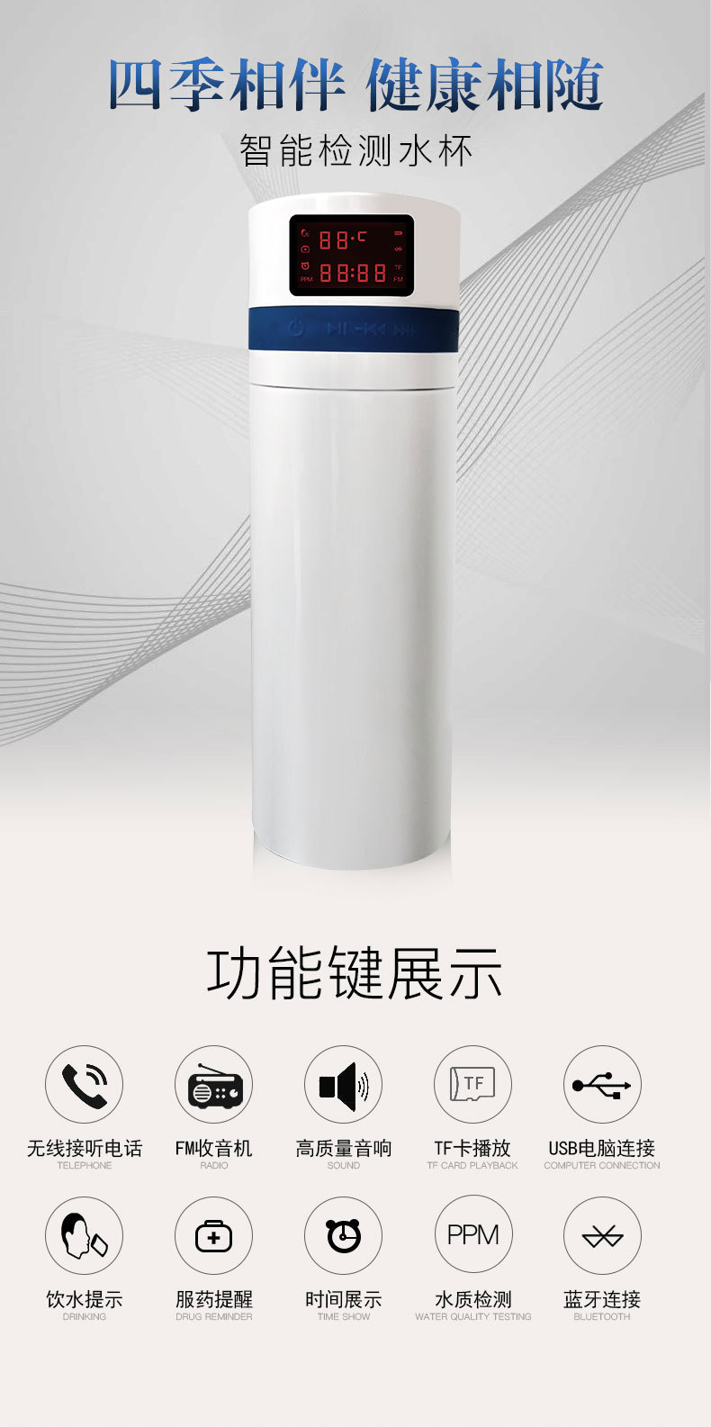 商品名称:智能检测304不锈钢多功能蓝牙音乐智能保温杯 创意生活产品