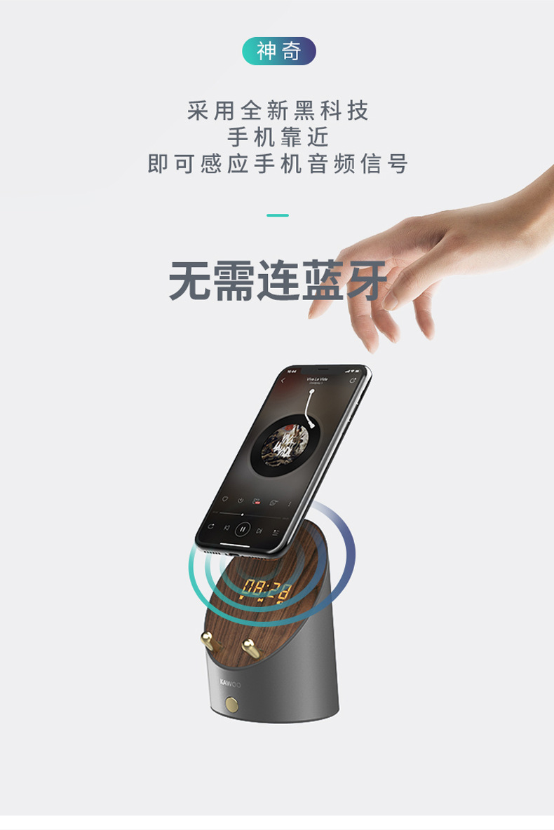 商品名称:KAWOO创意多功能灵犀感应音箱 桌面迷你闹钟手机架无线蓝牙音箱 科技感小礼品 年轻人喜欢什么礼品