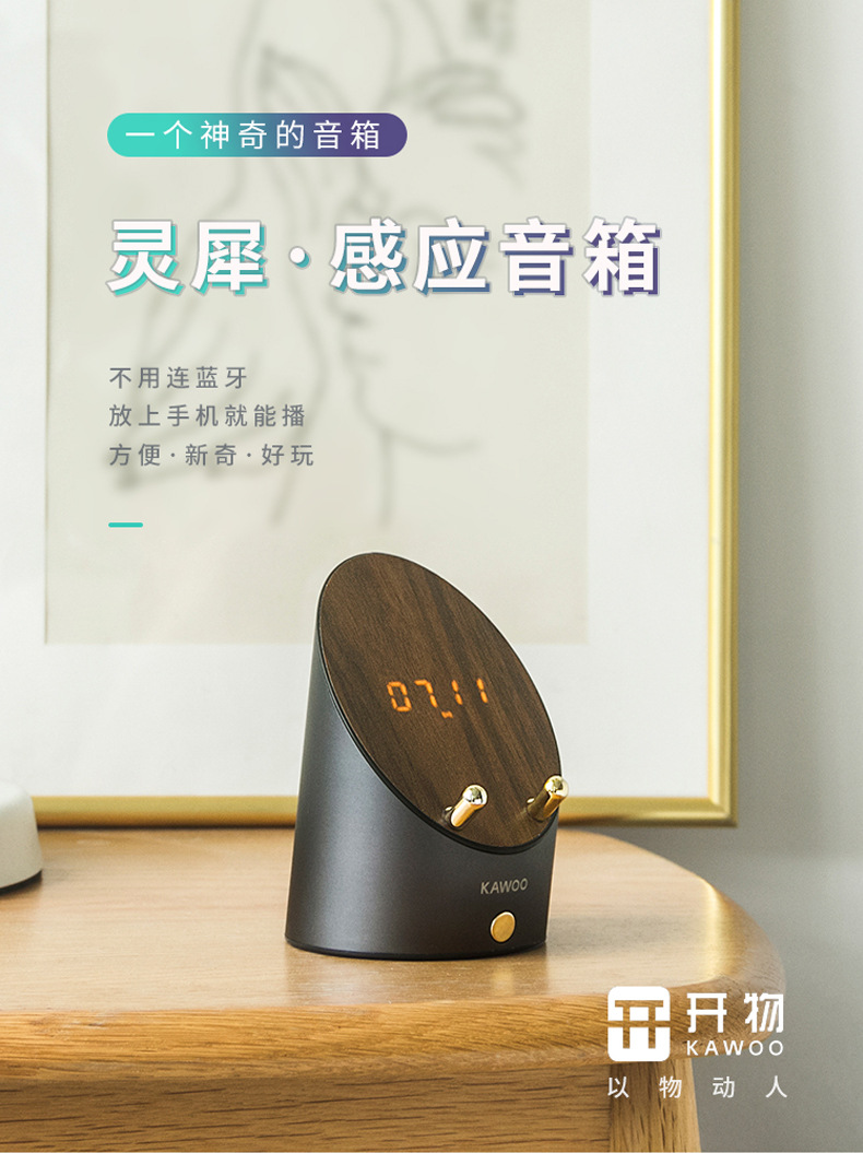 KAWOO灵犀感应音箱 无线蓝牙音箱 桌面迷你小音响闹钟手机架 抽奖礼品方案 黑科技创意礼品